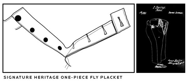 而褲檔看似豪華的用了一整片布邊的one piece fly[2]設計